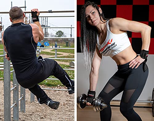 Innovatief design: onze speciaal ontwikkelde trekhulp is aan de handgreep voorzien van een metalen bout, die zorgt voor een verhoogde grip. Hij is zo gemaakt dat meerdere keren omwikkelen zoals bij traditionele lifting straps niet nodig is.