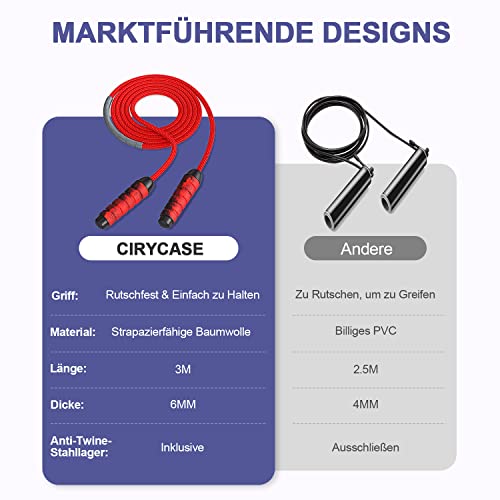 CIRYCASE Springtouw, 3 m, vrij instelbaar en duurzaam touwspringen, voor volwassenen, fitness met 360 graden kogellagers…