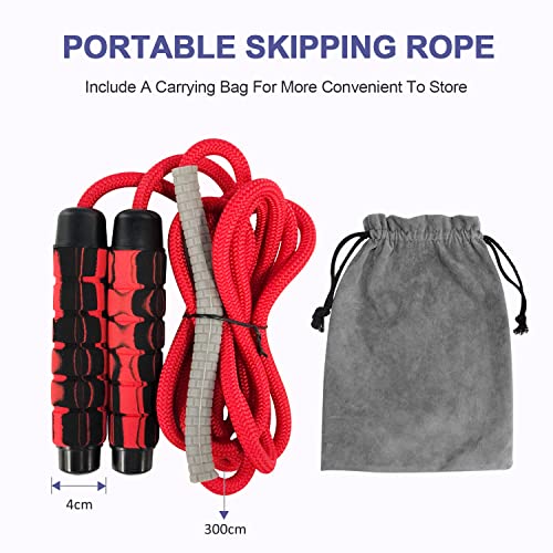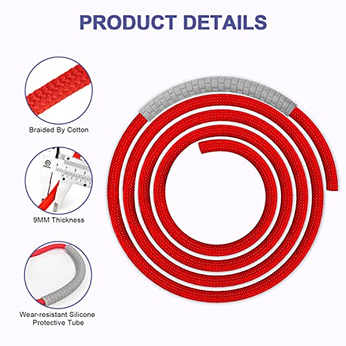[Ergonomische schuimrubberen handgrepen] Uitgerust met zachte sponzen die comfortabeler zijn om vast te houden en een stevigere grip bieden, zodat je het beste uit je training kunt halen. Bovendien is hij antislip en ademend, zodat je handpalmen droog blijven. Het touw is voorzien van een polyester mantel en een rubberen ring aan één kant van het touw, zodat het niet scheurt en slijt.