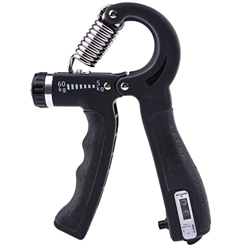 Instelbare weerstand: aan de voorkant van de greepversterking bevindt zich een knop, waarmee je de weerstand in het bereik van 5-60 kg kunt instellen. Verander de weerstand door de knop met de klok mee te draaien voor hogere weerstandsniveaus.