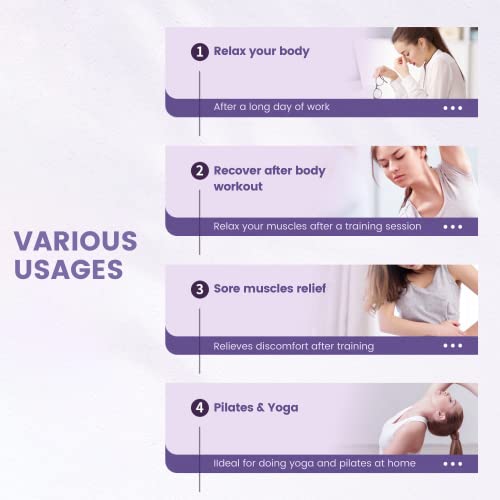 ANDERE TOEPASSINGEN: De roller kan ook worden gebruikt voor massage, balansverbetering, herschikking van de wervelkolom, spiercontracties, littekenweefsel en knopen. De roller vermindert niet alleen de pijn van deze aandoeningen, maar stimuleert ook de bloedsomloop.