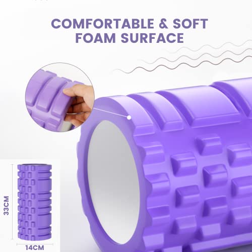 7 IN 1 MASSAGE ROLLER: Onze Foam Roller wordt zowel gebruikt voor training als voor het masseren van pijnlijke plekken na de training. Het is zeer geschikt voor yoga, pilates, stretching voor het hardlopen en herstel na het sporten om nek, rug, benen en voeten te ontlasten. Bewezen duurzaamheid en uitzonderlijke effectiviteit maken de massageroller tot een vertrouwd hulpmiddel voor fysiotherapeuten, massagetherapeuten, sporttrainers en professionele atleten. 3D-MASSAGEOPPERVLAK: De massagerol heeft een oppervlak van EVA-sportschuim, ontworpen met verhoogde of uitstekende punten die de lijnen van de handen en vingers proberen na te bootsen om een realistisch massagegevoel te creëren. Het heeft de nodige druk en kracht om massages uit te voeren die nodig zijn voor revalidatie na sportblessures en de preventie ervan. NEEM HET MEE – Dankzij de afmetingen (33x14cm) kunt u de roller gemakkelijk naar uw trainingsplek vervoeren, of het nu een sportschool, een buitenpark of gewoon het terras thuis is. Het gebruik ervan wordt aanbevolen aan het einde van de trainingssessies om de tijdens de training getrainde spieren te ontspannen. HERSTEL EN OPWARMING: Activiteiten met een hoge intensiteit gaan vaak gepaard met spiercontractie en spanning. Onze foamroller is je beste bondgenoot, omdat je hem zowel als warming-up kunt gebruiken om je flexibiliteit te verbeteren en beter te presteren; evenals stimulator om spierpijn effectief te verlichten na het sporten. ANDERE TOEPASSINGEN: De roller kan ook worden gebruikt voor massage, balansverbetering, herschikking van de wervelkolom, spiercontracties, littekenweefsel en knopen. De roller vermindert niet alleen de pijn van deze aandoeningen, maar stimuleert ook de bloedsomloop.