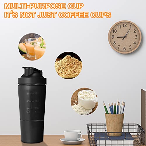 ✅ [2-in-1 eiwitshaker]: de eiwitshaker van roestvrij staal is verdeeld in twee gebieden, het bovenste deel is een beker van 600 ml, het eiwitpoeder van 200 ml kun je in de daaronder liggende beker doen, of je kunt het met de meegeleverde roerbal drinken wanneer je het nodig hebt.