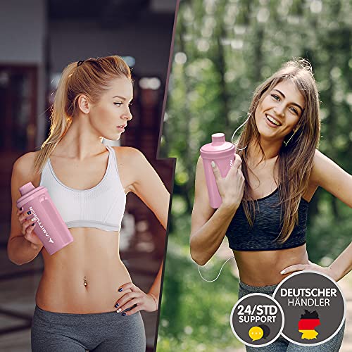 Protein Shaker 500 ml “Heaven” lekvrij, BPA-vrij met klikbare zeef en weegschaal voor romige wei-shakes, gym fitness cups voor isolaten en sportconcentraten, origineel in Koraalroze | 500ml